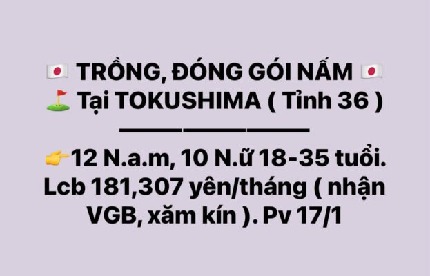 MÔ TẢ CÔNG VIỆC TRỒNG, ĐÓNG GÓI NẤM YÊU CẦU CÔNG VIỆC Chịu khó, tỉ...