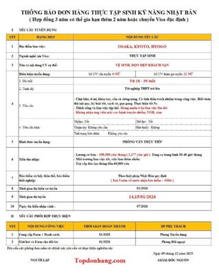 Đơn Hàng DỌN DẸP KHÁCH SẠN – KYOTO, OSAKA, HYOGO