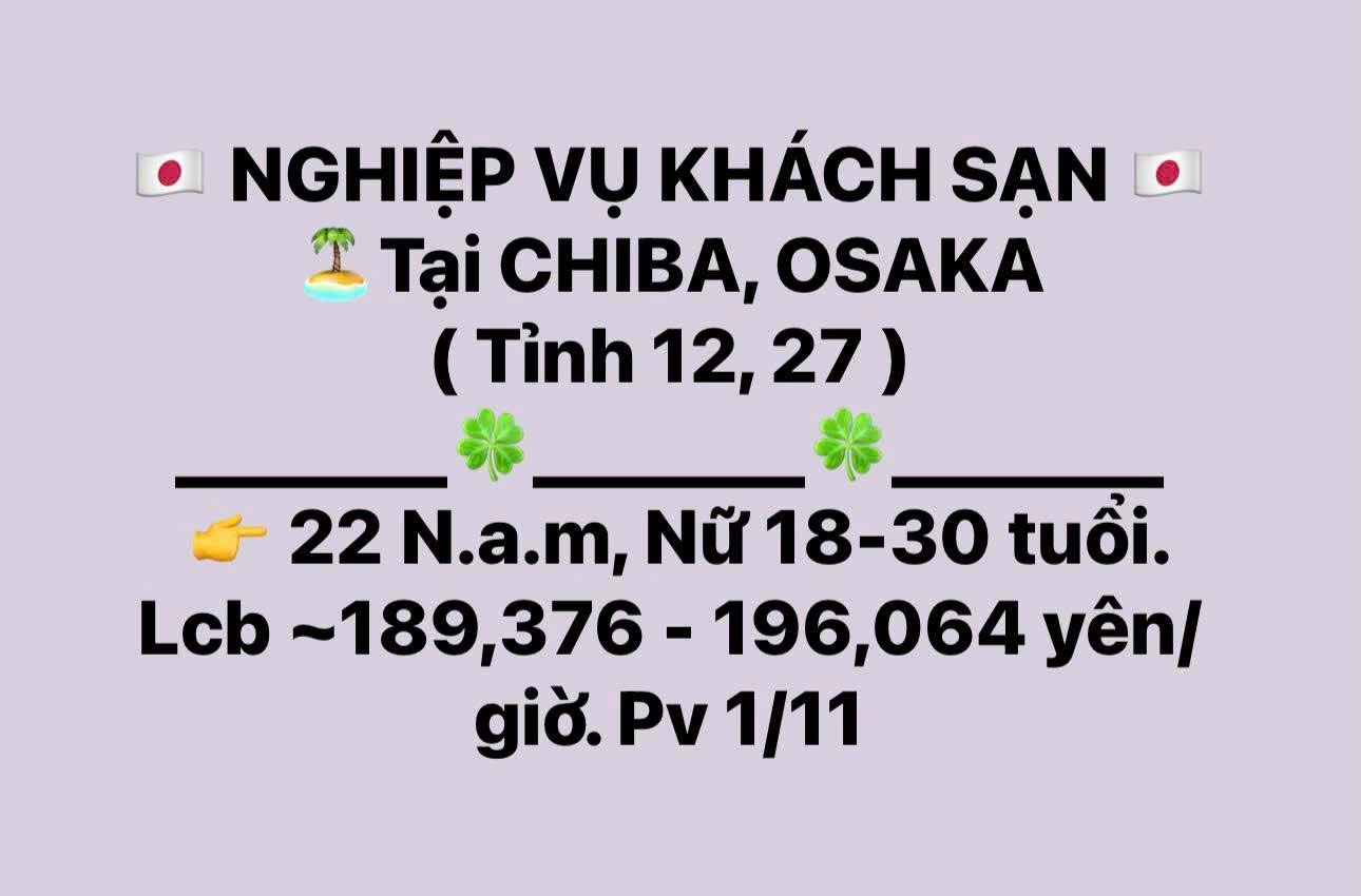 Đơn Hàng NGHIỆP VỤ KHÁCH SẠN – CHIBA, OSAKA