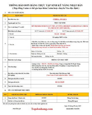Đơn Hàng NGHIỆP VỤ KHÁCH SẠN – CHIBA, OSAKA