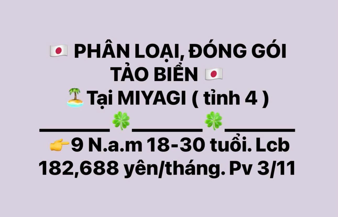 Đơn Hàng PHÂN LOẠI, ĐÓNG GÓI TẢO BIỂN – MIYAGI
