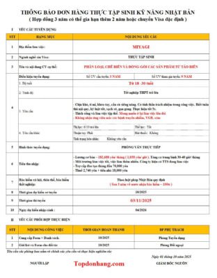 Đơn Hàng PHÂN LOẠI, ĐÓNG GÓI TẢO BIỂN – MIYAGI