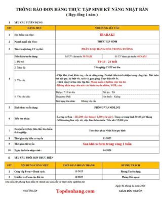 Đơn Hàng PHÂN LOẠI HÀNG HÓA – IBARAKI