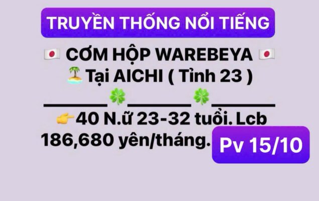 MÔ TẢ CÔNG VIỆC CƠM HỘP WARABEYA YÊU CẦU CÔNG VIỆC Chịu khó, tỉ mỉ,...