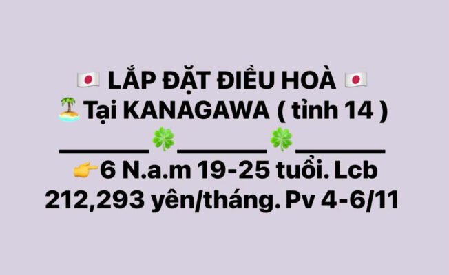 MÔ TẢ CÔNG VIỆC LẮP ĐẶT ĐIỀU HOÀ YÊU CẦU CÔNG VIỆC Chịu khó, tỉ...